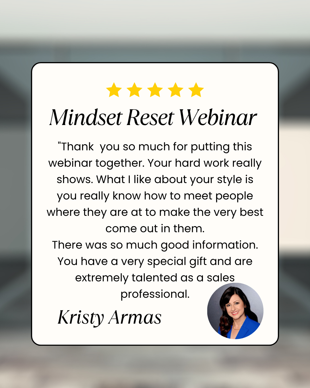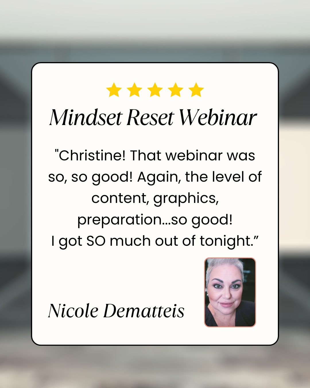 "Christine, That webinar was so, so good! Again, the level of content, graphics, preparation…..so good!